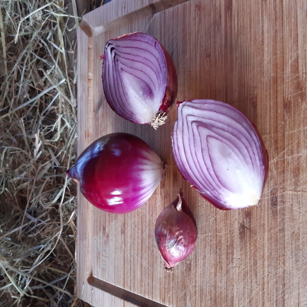 Aujourd’hui, notre test se portera sur les caractéristiques visuelles de différentes variétés d’oignons rouges et non sur leur goût…un peu trop fort pour nos petites papilles délicates?. Pourtant, l’oignon a des atouts nutritionnels importants. Il contient non seulement de la vitamine C mais regorge également d’oligo-éléments. Alors, par petites touches dans les salades, l’oignon rouge relèvera le goût et apportera une petite note sucrée.