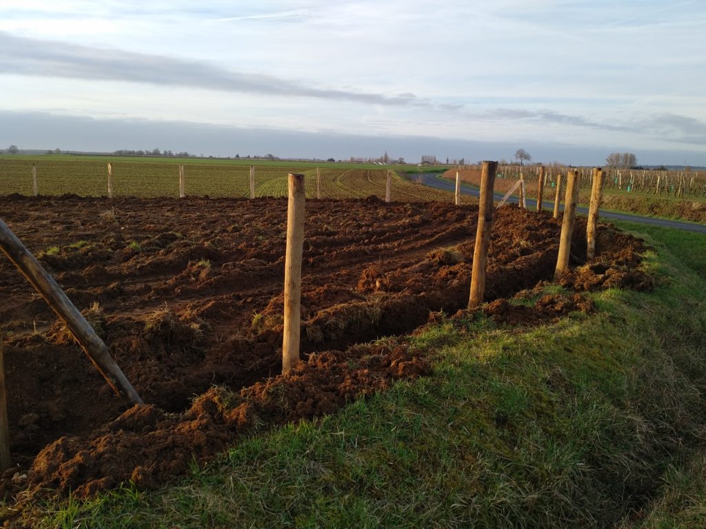 Qui dit jardin potager dit légumes, et qui dit légumes dit gibier, surtout à cet endroit où l’on croise régulièrement des lapins, où l’on note le passage de sangliers sur les terrains fraîchement travaillés par les agriculteurs, et même où l’on peut voir la trace de chevreuils sur les troncs des arbres du verger, légèrement boulottés. Bref, il y a du monde et on n’est pas sûr de vouloir tous les nourrir !