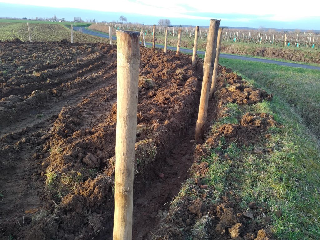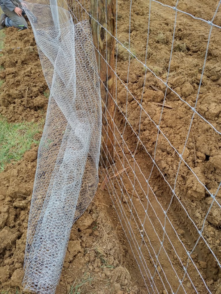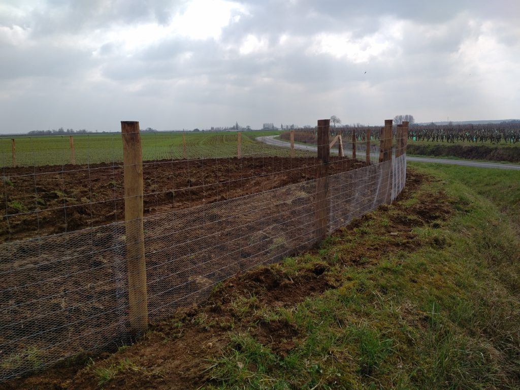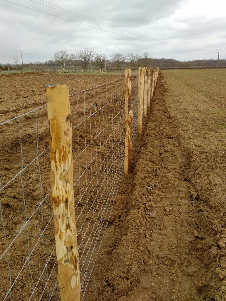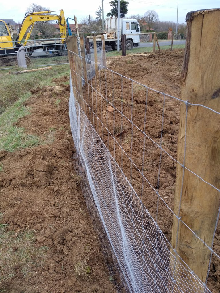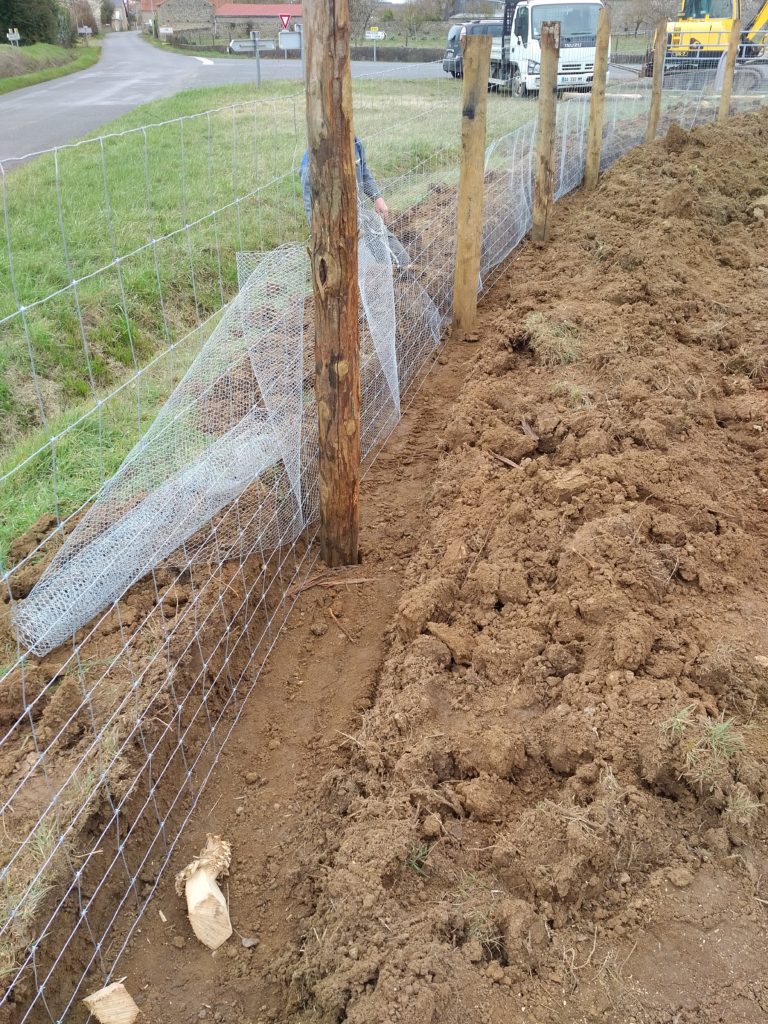 La pose d’une clôture s’imposait donc, avec enfouissement du grillage pour éviter les grattis des lapinous :