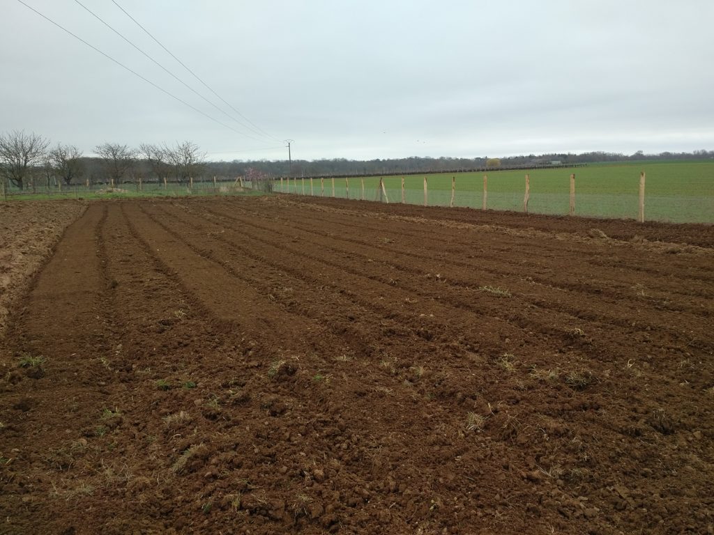 Bon, on a labouré, on a clôturé, il nous reste plus qu’à aplanir un peu les grosses mottes liées au labour. Pour cela, un coup de rotovator pour émietter tout ça, le résultat est pas mal :