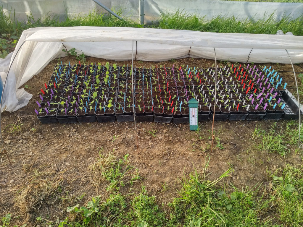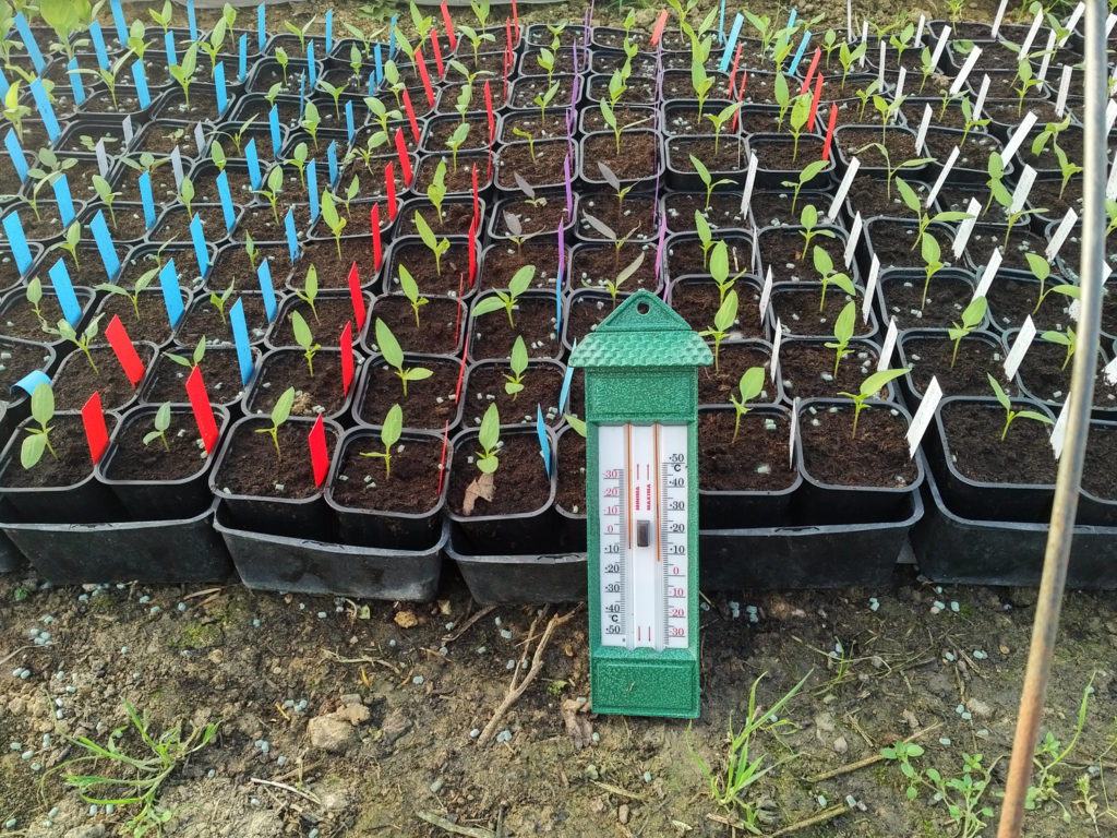 Je suis dans les alpes de haute-provence, à 600m d’altitude. Les semis sont sous serre plein sud la journée (températures 28-32°C) et dans l’habitation la nuit (18-22°C).