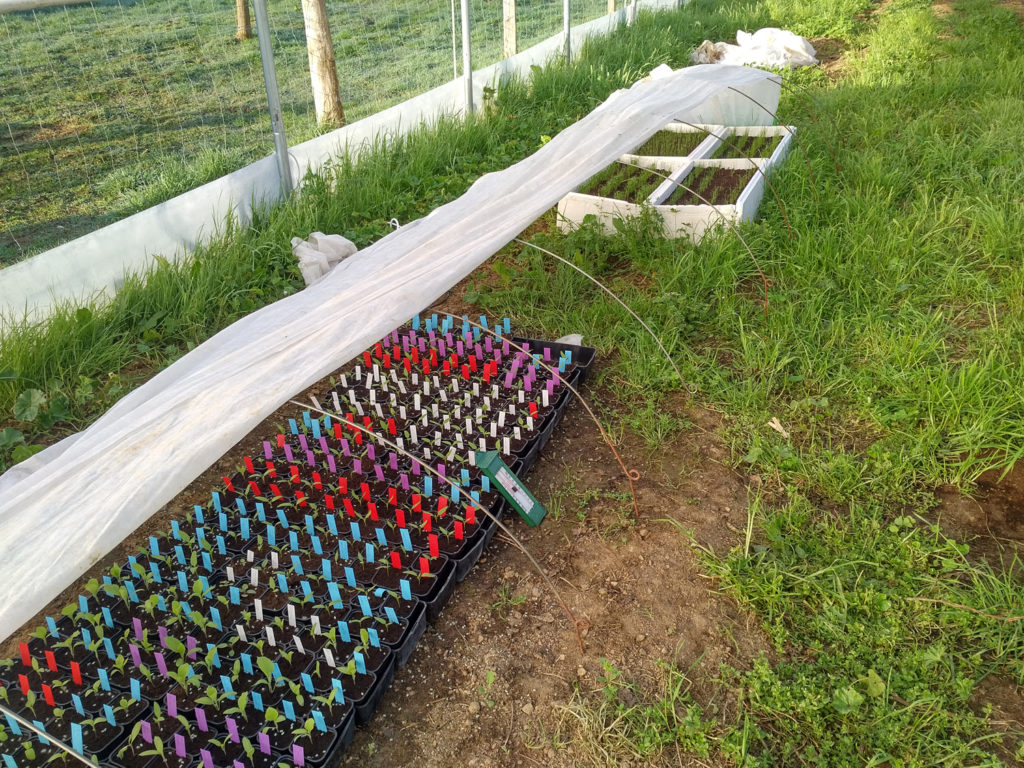 Nous sommes désormais début avril et nous allons procéder d’ici à la mi-avril à l’implantation directe, dans le tunnel, de l’ensemble des plants d’aubergines, poivrons et piments. Bien entendu, il faudra rester vigilant sur la météo et les nuits fraîches, encore fréquentes à cette époque. Un bon voile d’hivernage (P17 dans le jargon professionnel car d’une densité de 17 gr/m², ou P30 quand il est plus épais) couvrant la totalité des plants n’est pas un luxe mais une nécessité.