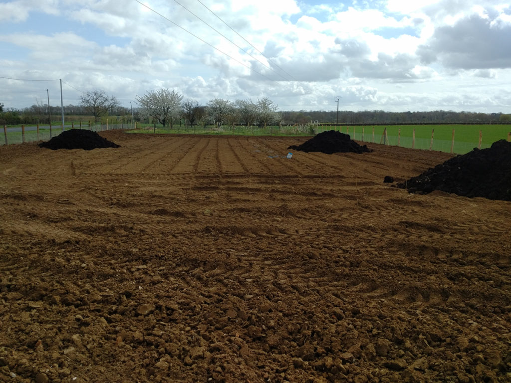 Probablement chacune des planches recevra un paillage ou un engrais vert, nous ne souhaitons pas travailler une terre nue. Nous allons essayer diverses formes, que ce soit du BRF (de diverses essences), de la paille, du gazon, voire du compost. Nous sommes ouverts à toutes les suggestions alors, n’hésitez pas !