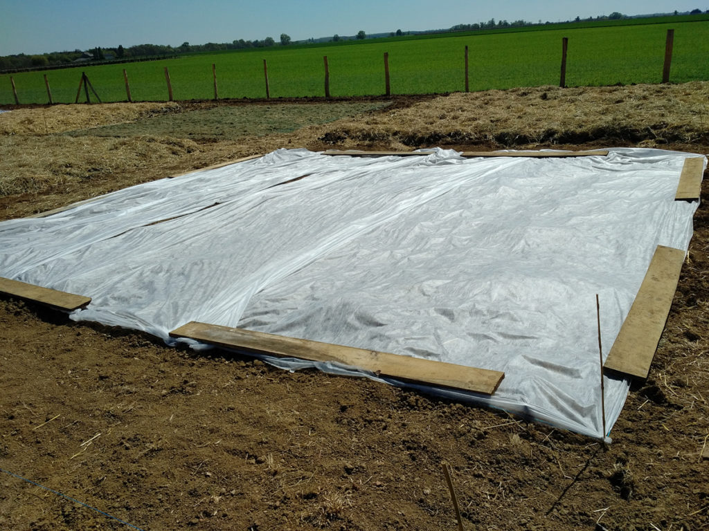 Par contre, nous ne pouvons pas parler de paillage à ce sujet car le voile n’empêche pas la croissance des plantes en-dessous, bien au contraire. Du coup, nous allons en profiter pour faire un « faux semis », c’est à dire que nous avons travaillé la terre comme si nous allions semer, ce qui va favoriser la levée des herbes indésirables. Une fois ces mauvaises herbes levées, il suffit de les supprimer en travaillant superficiellement et, pour le coup, d’effectuer le véritable semis.