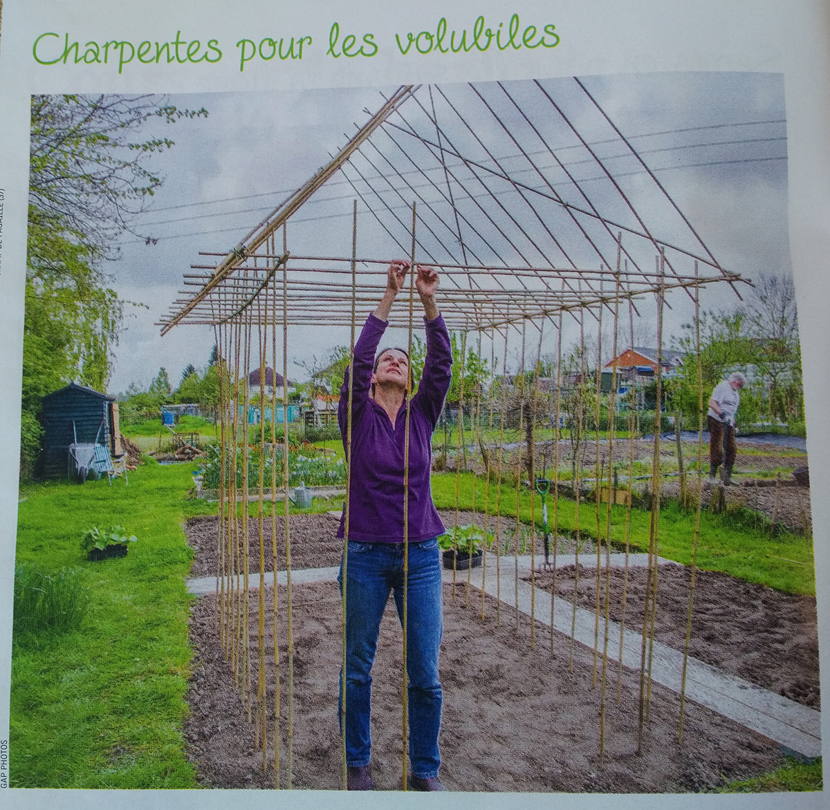 On a aussi beaucoup aimé cette suggestion, nous allons essayer de la reproduire au Jardin d’Essai, pour les haricots grimpants ou d’autres volubiles :
