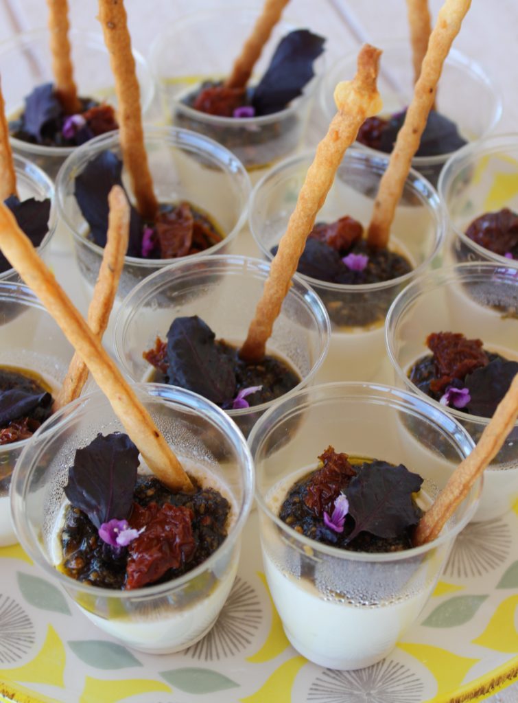 Sur la photo, vous pouvez constater que Séverine a présenté ses panna cotta d’un gressin au parmesan, vous trouverez la recette ici.