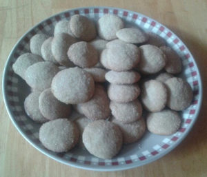 Faire des petites boules et les aplatir légèrement pour former de petits biscuits avec la pâte. Les rouler ensuite dans un peu de sucre.
