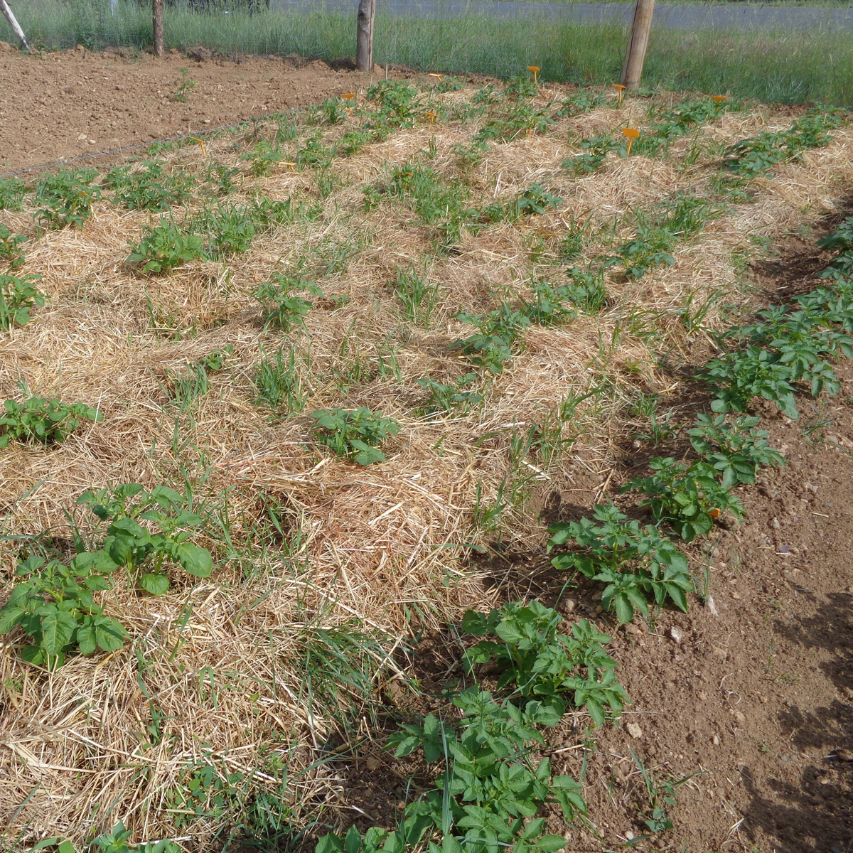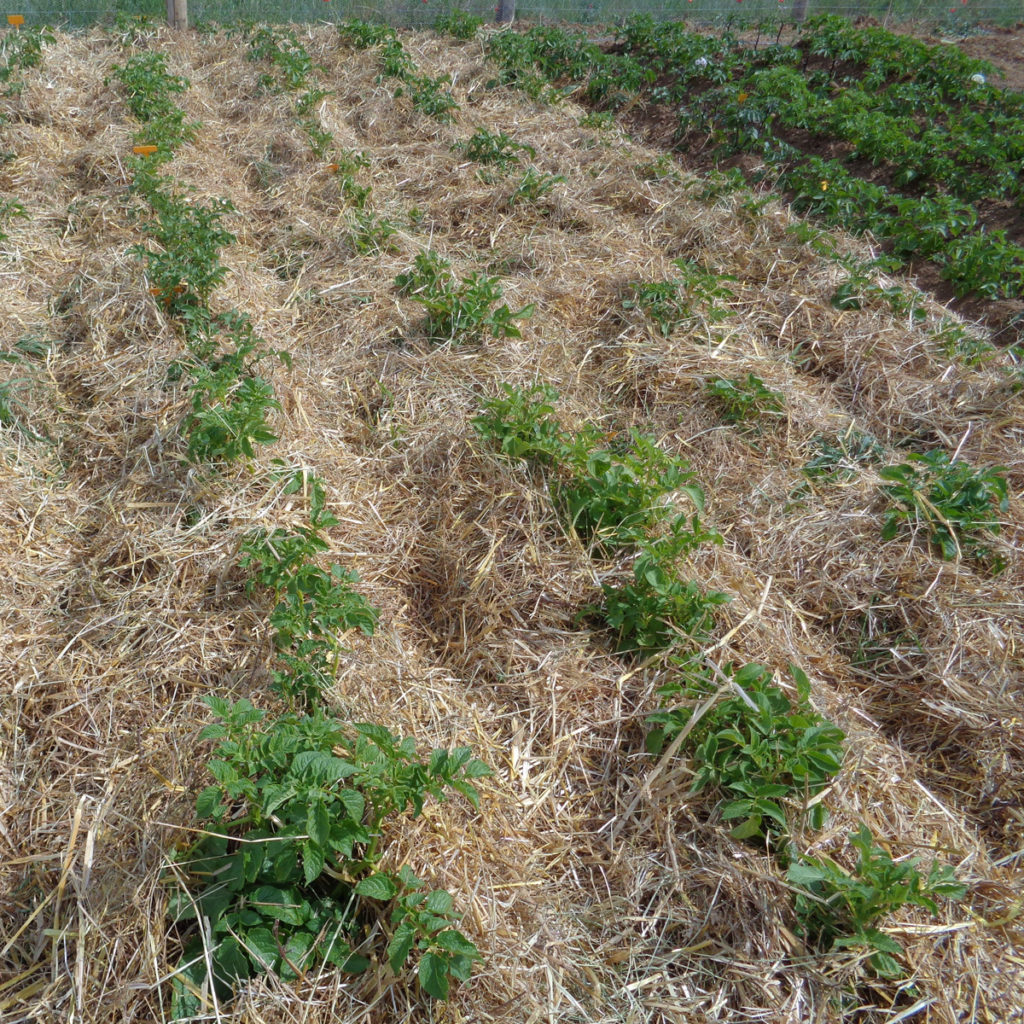 Notre explication : lors de la plantation, il faut être vigilant à l’humidité du sol. La paille joue un rôle d’isolant et si l’hygrométrie est trop basse, les plants ne partiront pas en végétation. Il sera donc intéressant de ne pas chercher à être trop précoce avec cette technique qui ne semble pas adaptée à une plantation trop hâtive.