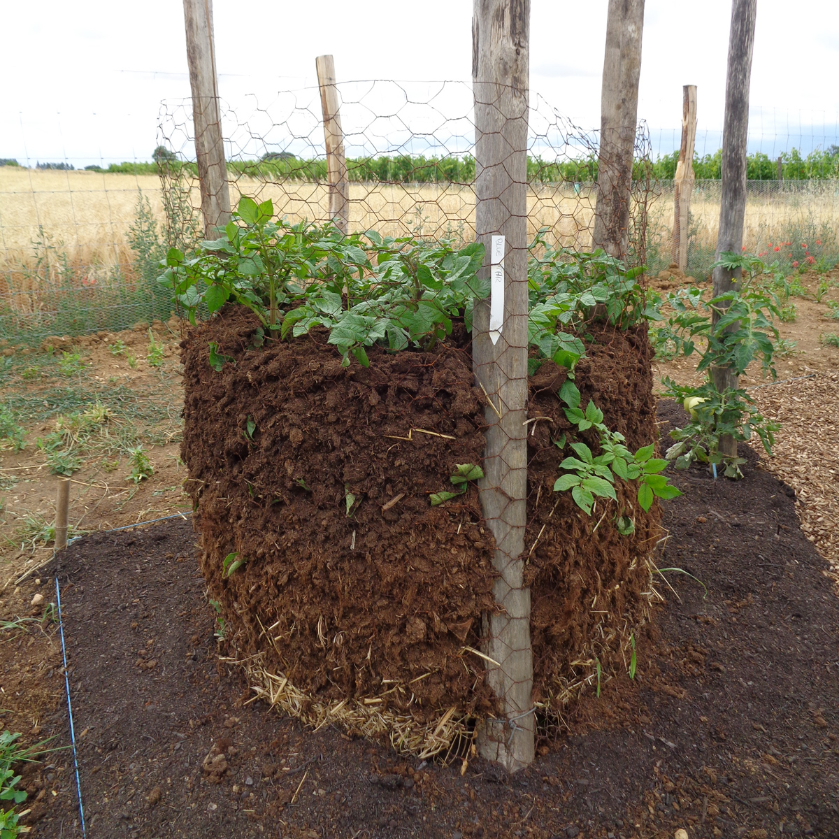 Je voulais vous suggérer, si vous n’y avez pas déja pensés, de construire votre tour à pomme de terre avec des bottes de pailles et remplir avec des matières azotés et carbonés voir même du compost…
