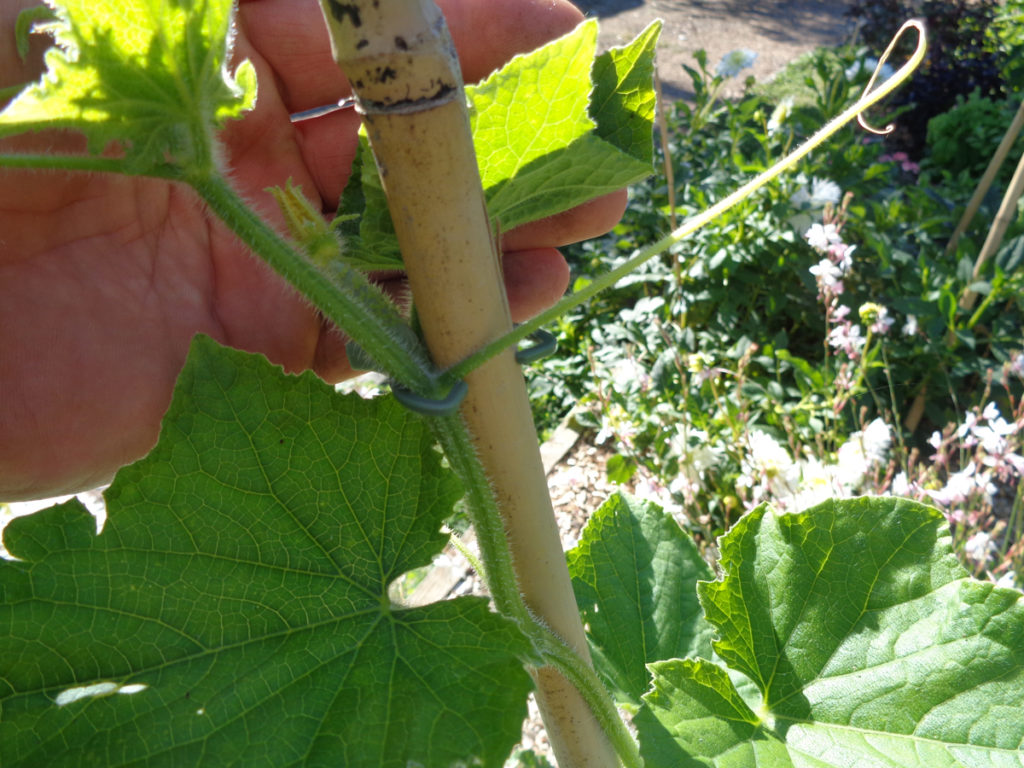En ce qui concerne les concombres et cornichon, il faut obligatoirement prévoir un tuteurage. Au fur et à mesure de la croissance, la plante s’accrochera (avec votre aide, clips, ou d’elle même) au tuteur. Cela évitera que la tige se casse. Il faut aussi être vigilant en attachant la tige au tuteur car avec le poids des fruits le tuteur ou la tige peuvent casser.