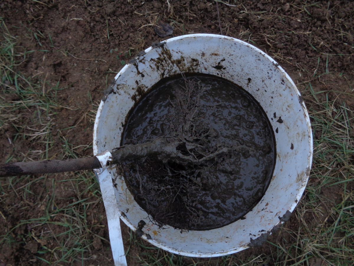 Pour une bonne reprise, nous avons légèrement coupé le chevelu racinaire de quelques centimètres. Puis, les plants étaient badigeonnés de pralin (terre + compost + eau = boue épaisse). En adhérant aux racines, le pralin évitera la formation de bulles d’air. Pour une meilleure reprise, veillez à bien tasser la terre à la base des plants.
