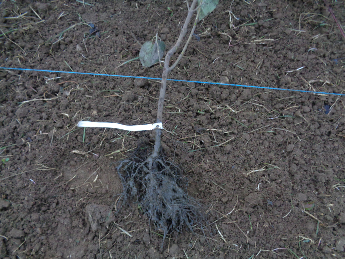 Puis, l’heure venue (c’est-à-dire la deuxième semaine de décembre), nous sommes allés récupérer nos plants en racines nues, de 30 à 60cm de hauteur, fournis par la Chambre d’Agriculture et issus d’une pépinière locale. Nous avions deux types de plants, comme indiqué ci-dessus, des arbres buissonnants (de 1m à 5m adulte) et des arbres en cépées (de 4m à 10m ). Nous avons aussi ajouté des plants de notre gamme, et gardé quelques pieds d’arbustes implantés naturellement. Le jour J, équipé d’une pioche, d’une pelle et d’un sécateur, le travail pouvait démarrer.
