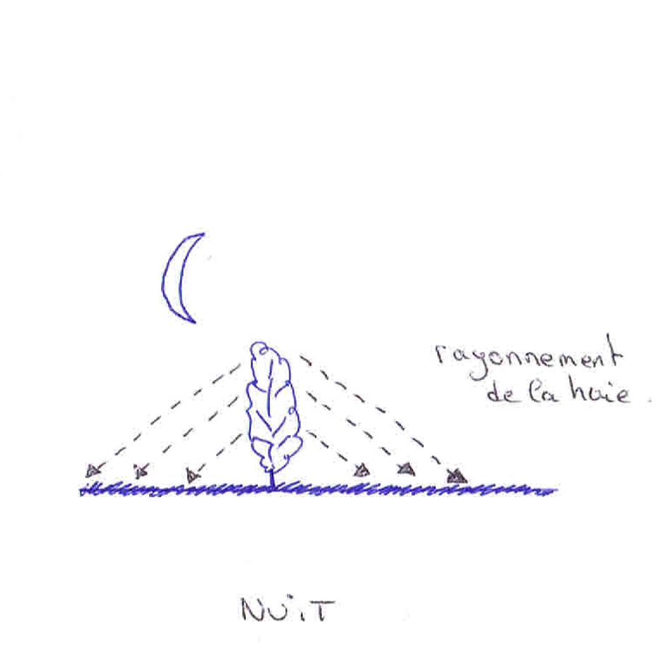 –elle améliore le climat : en été, la haie fournit une ombre appréciable. Le jour elle réfléchit la chaleur. Une partie de cette chaleur est emmagasinée et sera restituée la nuit.