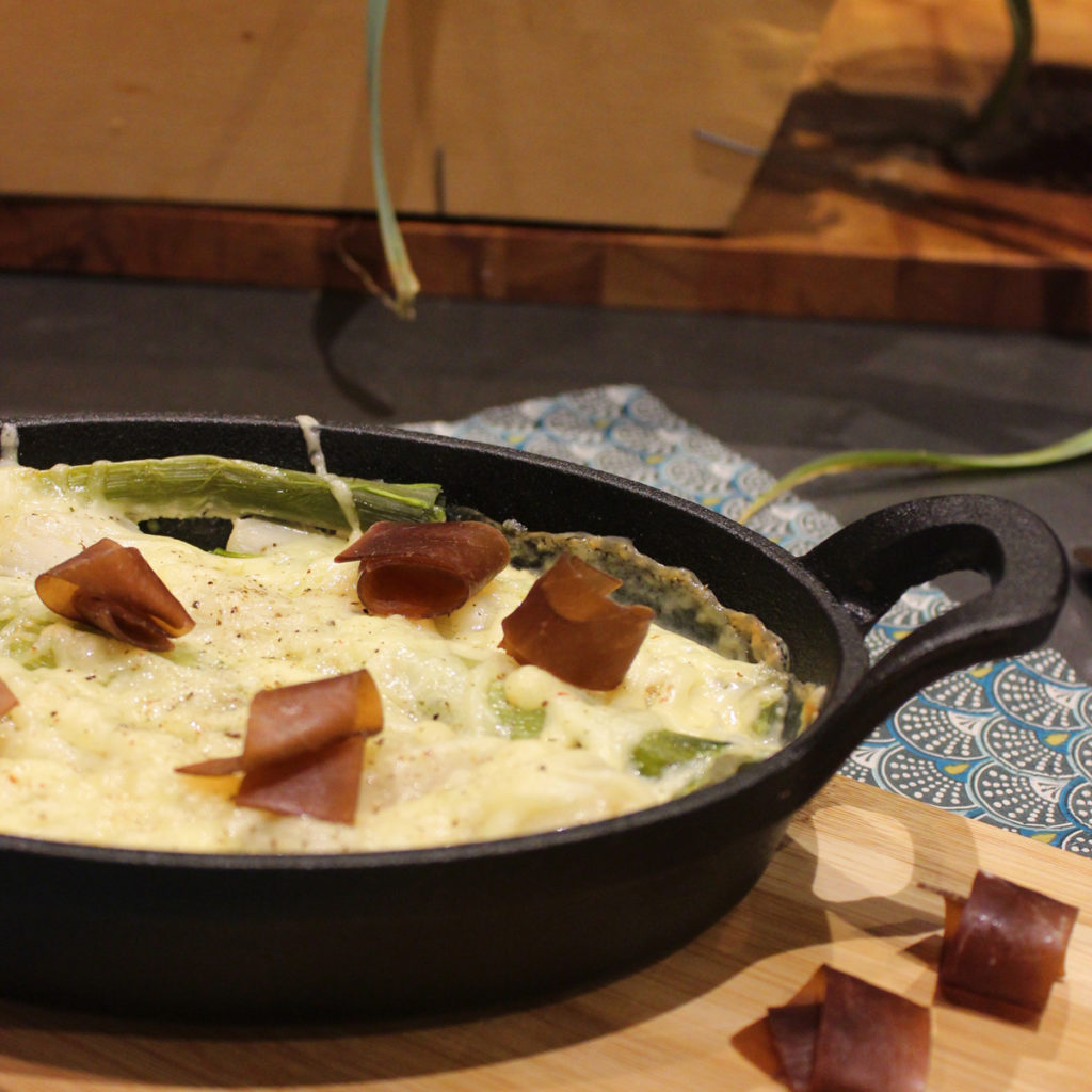 Pour renouveler un peu les recettes classiques autour du poireau, voilà une recette de Séverine, du blog La petite cuisine des chafouineries, avec un plat unique à la fois léger et savoureux, qui ravira petits et grands. On peut tout-à-fait réaliser la recette sans viande de grisons, ou la remplacer par du jambon, et la tomme de Savoie par un autre fromage.