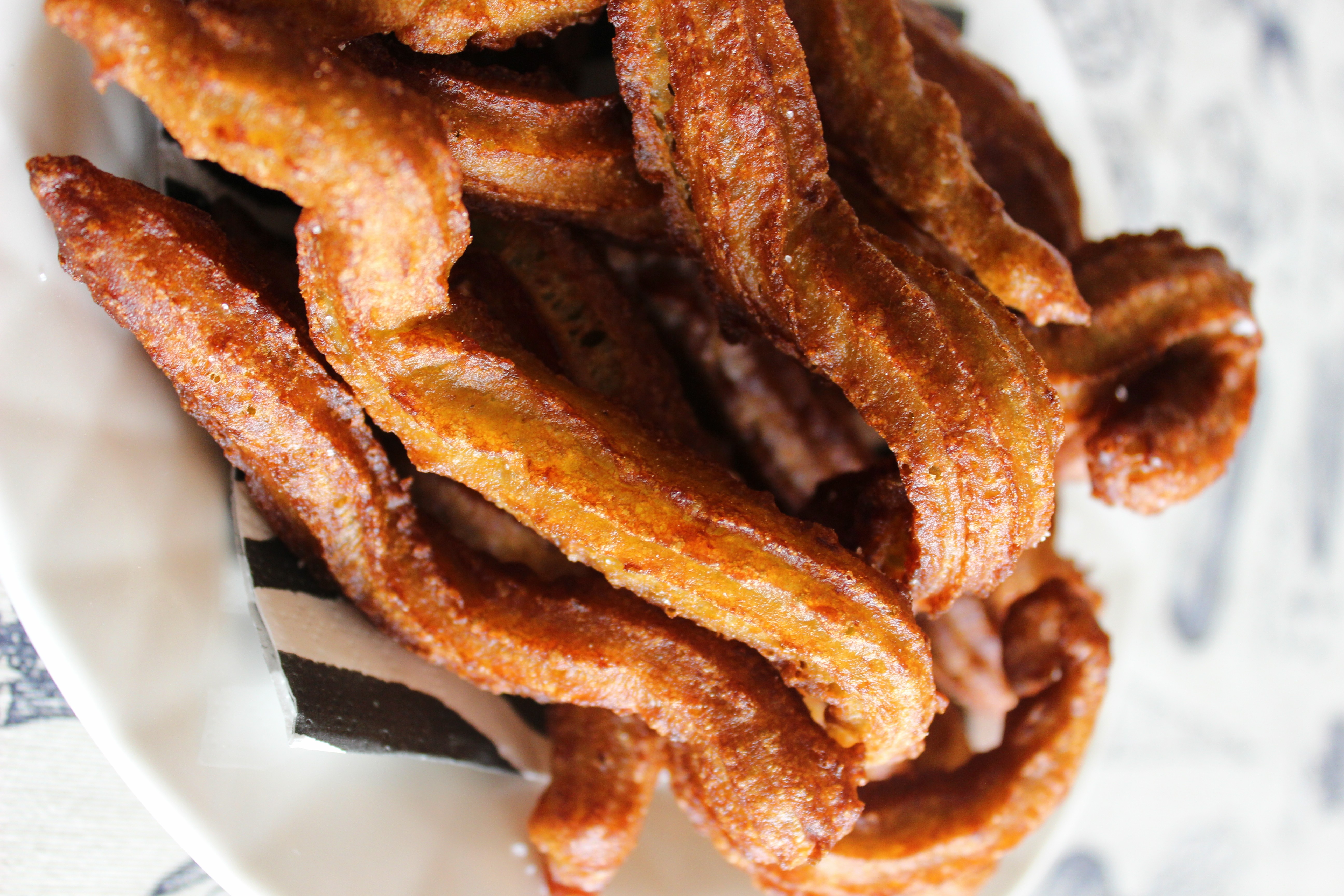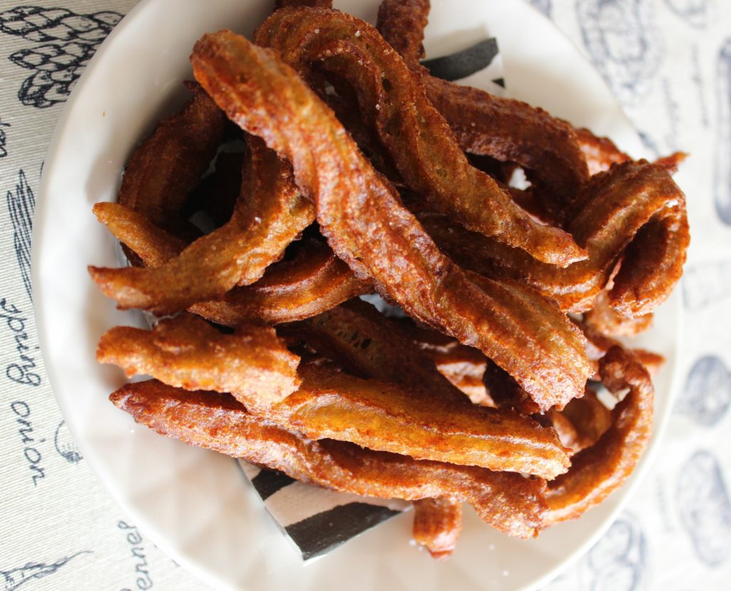 Former les churros à l’aide de la poche à douille au-dessus de l’huile et couper la pâte aux ciseaux au fur et à mesure. Les churros doivent prendre une belle couleur dorée. Les retourner à mi-cuisson puis les déposer sur du papier absorbant.