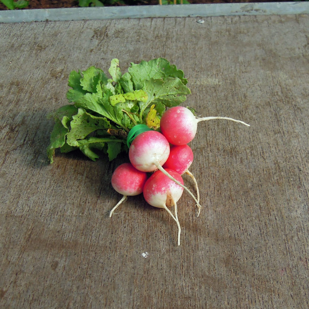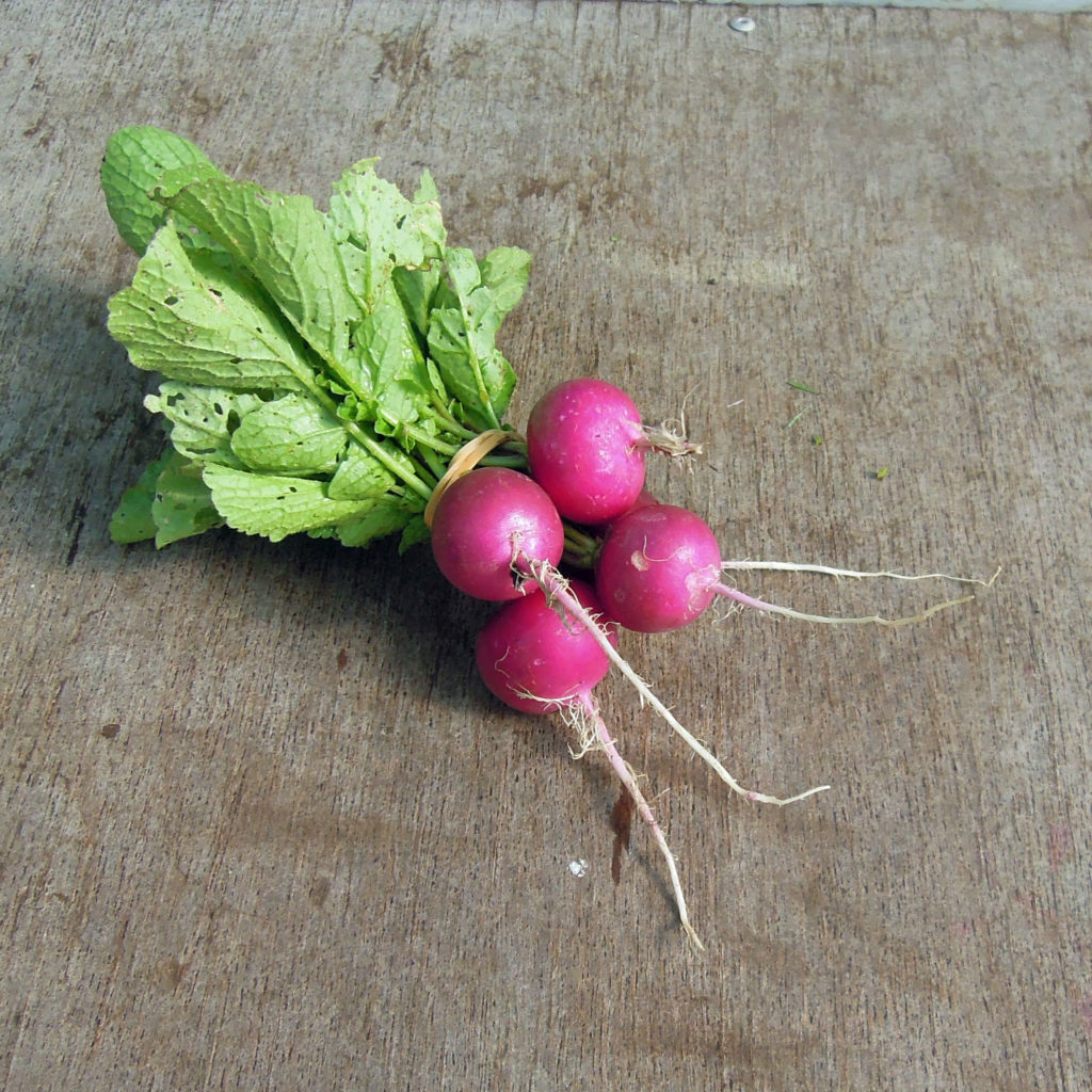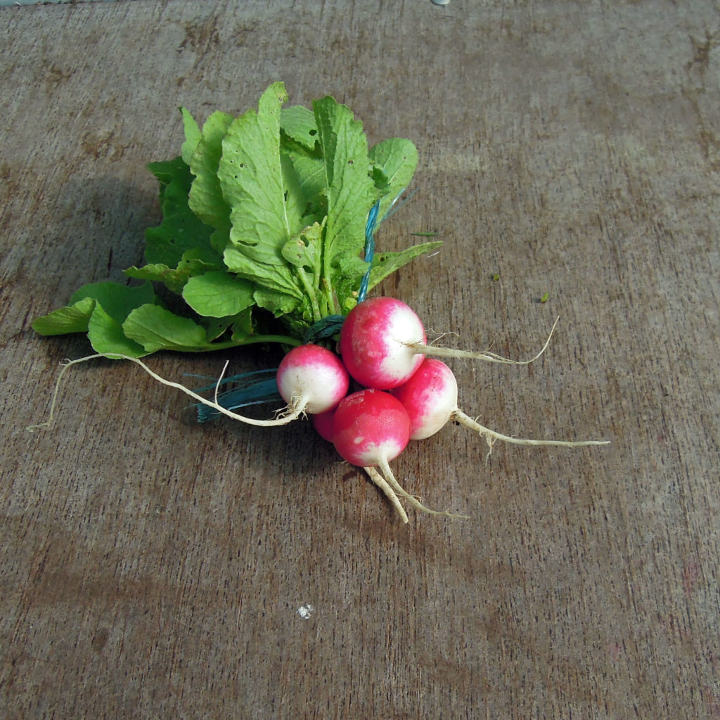 Comme vous le suspectez, grâce à ce titre évocateur, nous avons essayé plusieurs variétés de radis… ronds. Le but étant de sortir du radis classique demi long à bout blanc, les « french breakfast », comme les anglais aiment les appeler, comme si nous en mangions tous les matins trempés dans le café ! ?