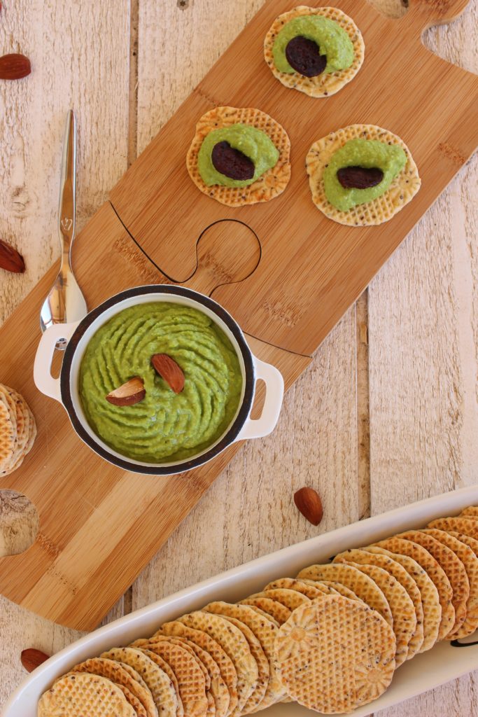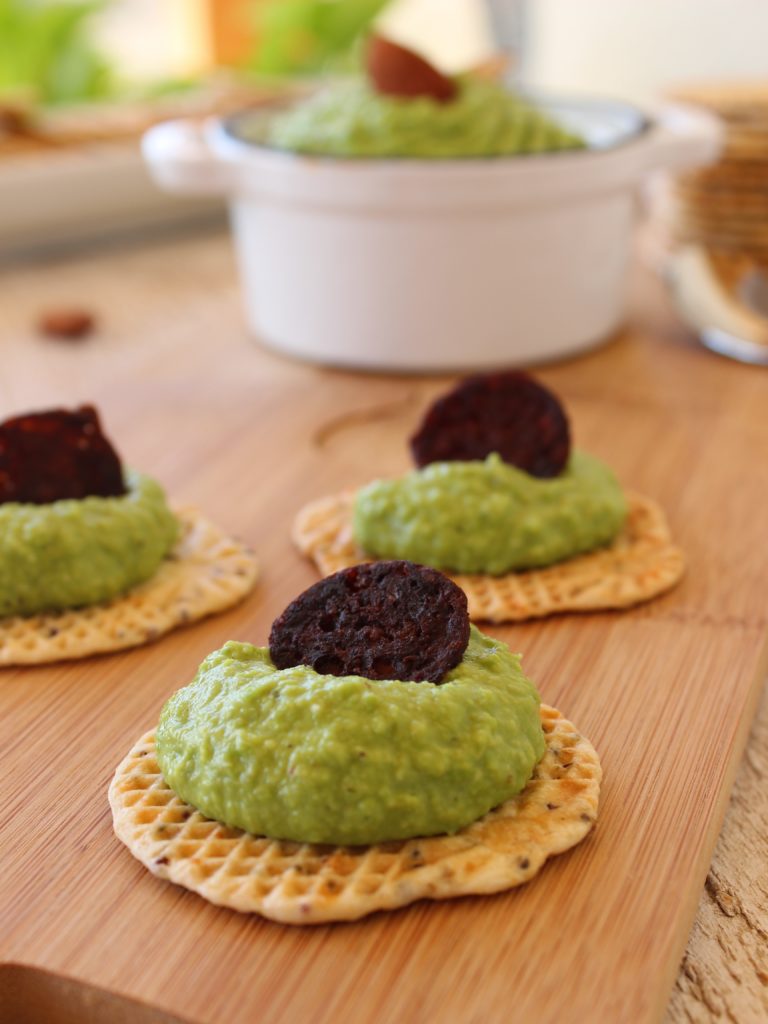 Servir avec des crackers aux graines, des tortillas, des bricelets salés comme ici ou tout simplement de fines tranches de baguettes grillées.