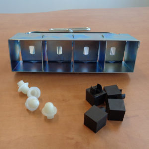 Créant 4 mottes de 50 mm de côté, l’outil peut être équipé d’une pièce en plastique carrée de 17 mm de côté (évidement en option), qui vient en remplacement de la pièce permettant de faire le trou pour la graine. Vous pourrez ainsi repiquer votre mini-motte dans cette motte. Sinon, vous pourrez aussi créer des mottes de taille suffisante pour les « grosses » graines telles que les courgettes, courges, melons, etc. qui nécessitent plus de place pour leurs racines.