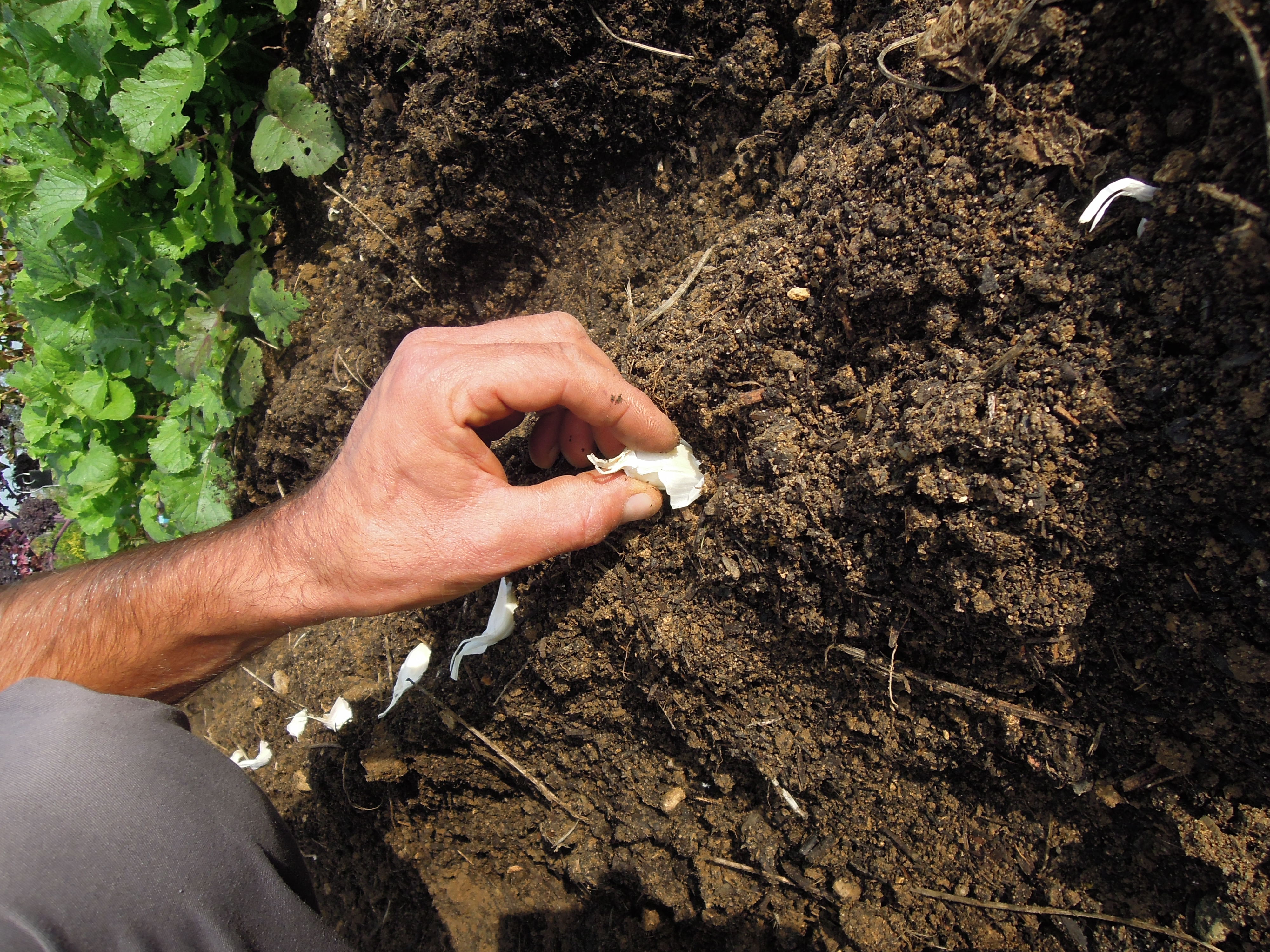 Une fois que vos caïeux sont détachés, il vous faudra préparer votre sol. L’ail n’aimant pas, mais alors pas du tout, l’humidité, préférez-lui des terres légères et bien drainées, que vous ameublirez sur une vingtaine de centimètres à l’aide d’une fourche bêche. Il est inutile, voire même néfaste, d’ajouter de la matière organique fraiche à la plantation, l’ail se contentera de la fumure décomposée de l’année dernière.
