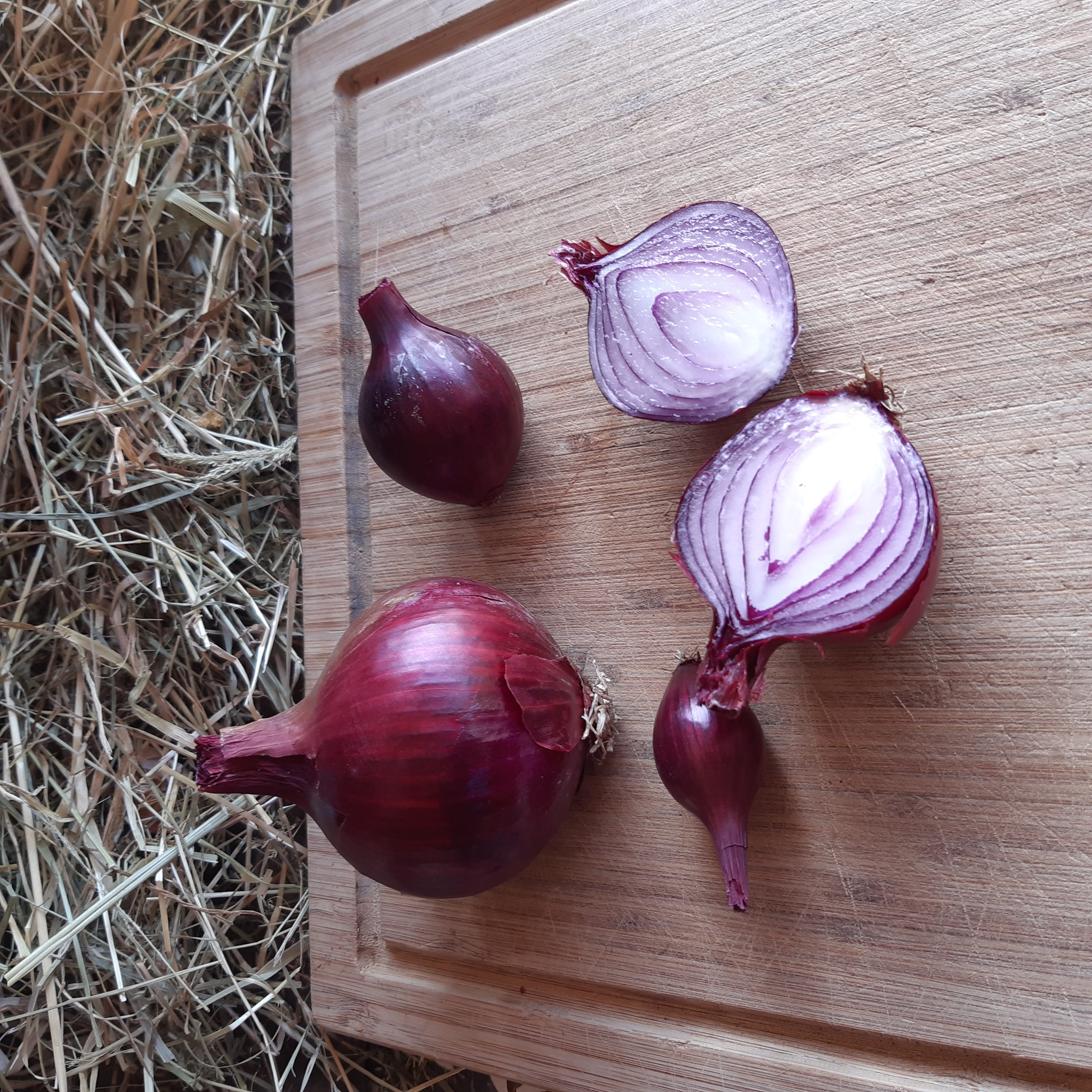 Aujourd’hui, notre test se portera sur les caractéristiques visuelles de différentes variétés d’oignons rouges et non sur leur goût…un peu trop fort pour nos petites papilles délicates?. Pourtant, l’oignon a des atouts nutritionnels importants. Il contient non seulement de la vitamine C mais regorge également d’oligo-éléments. Alors, par petites touches dans les salades, l’oignon rouge relèvera le goût et apportera une petite note sucrée.