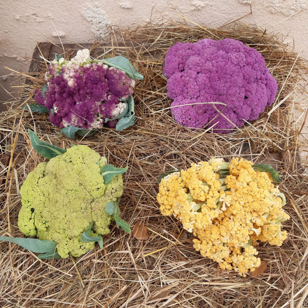 Viennent ensuite les variétés qu’on consomme pour leurs inflorescences, comme le chou-fleur communément blanc, mais aussi vert ou violet, le brocoli et le chou romanesco, cultivé en France seulement depuis les années 1990 et célèbre pour ses incroyables figures fractales. N’oublions pas de mentionner à l’intention des puristes… le chou-rave, une espèce qui développe à la base de sa tige un collet tubérisé, son principal élément comestible.