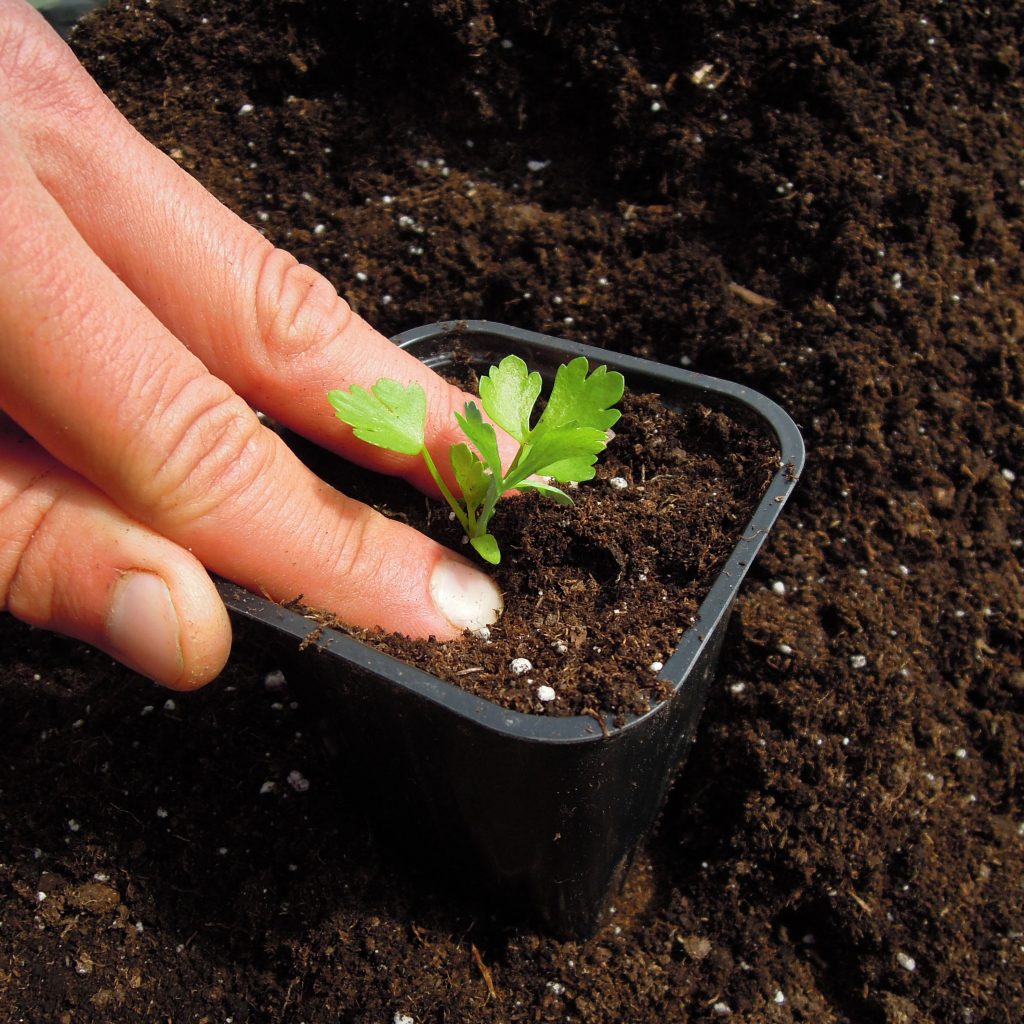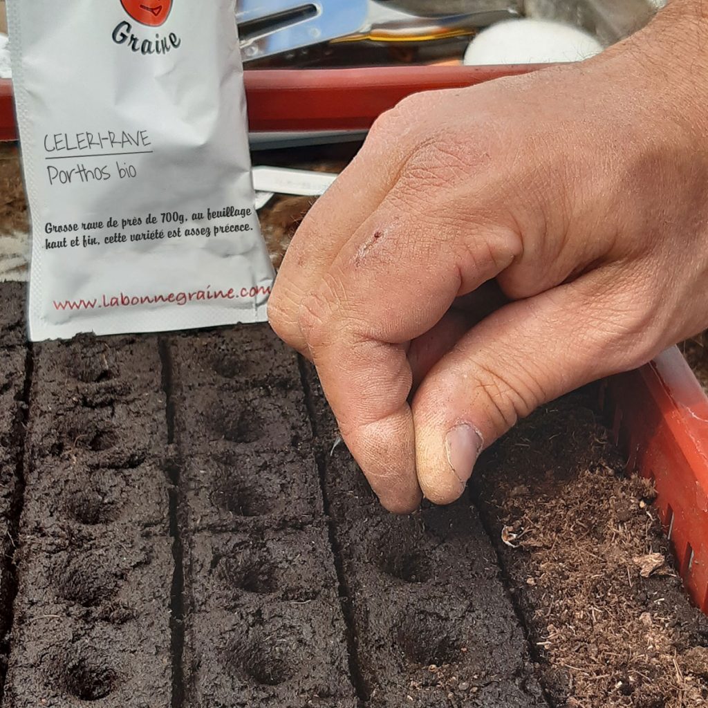 Bonjour, nous utilisons du terreau à semis. La terre est fine et une fois humidifiée, elle va rester en contact avec la graine et l’entourer comme un film, Cela va assurer une bonne germination.
