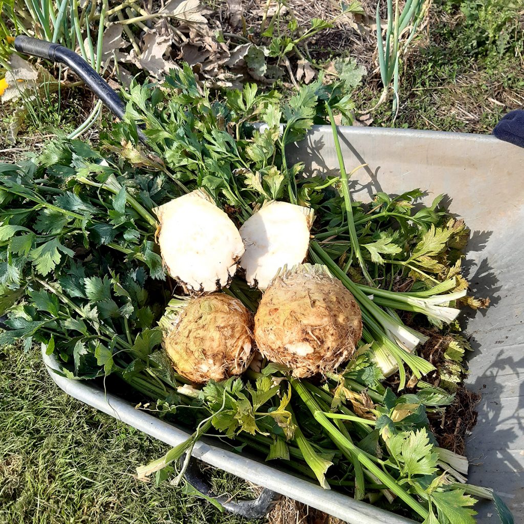 Vous pourrez récolter vos céleris en fonction de vos besoins mais avant les gelées. Vous pourrez les conserver jusqu’en février/mars en prenant soin de couper les feuilles au ras et de supprimer les racines. Enfouissez-les dans du sable et conservez au frais dans un cellier ou une cave.