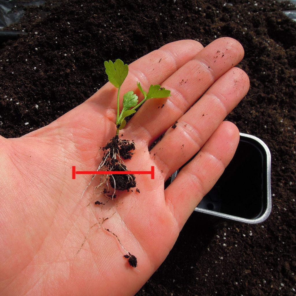 - Le premier interviendra 4 semaines après le semis (au stade de 2 feuilles) en veillant à raccourcir le pivot de moitié (racine principale). Prenez soin d’espacer les plants tous les 6 à 7 cm ou utilisez des plaques alvéolées.