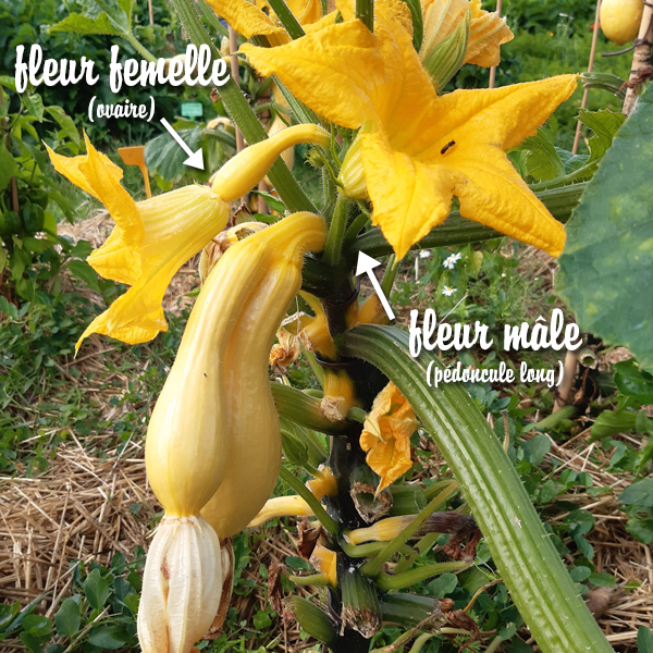 C’est une plante monoïque et allogame, c’est-à-dire que chaque plante possède des fleurs mâles et des fleurs femelles à des endroits différents de la tige (monoïque) et que la fécondation du pistil d’une fleur femelle s’effectue grâce au pollen d’une fleur mâle issue de la même espèce (allogame). Cette fécondation peut avoir lieu via les fleurs d’un même plant mais sachez que c’est rarement le cas. La fécondation des cucurbitacées fait souvent l’objet d’une pollinisation croisée. Le pollen d’une fleur mâle d’une courgette jaune par exemple peut féconder une fleur femelle provenant d’un plant de courgette verte.