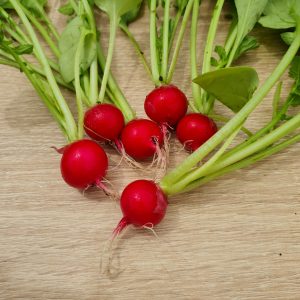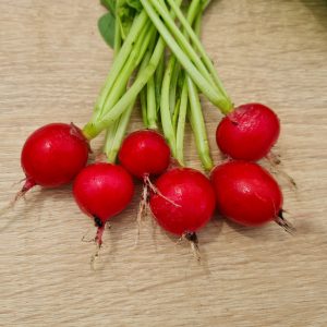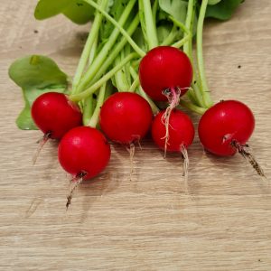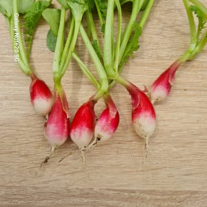 Patricia bio : Très belle variété d’un rouge lumineux avec une faible proportion de blanc. Les radis sont homogènes, rarement le cas pour du bio. Facile à botteler, les feuilles sont de taille moyenne. Une petite déception à la dégustation où nous l’avons trouvé un peu mou, mais sans trop de piquant.