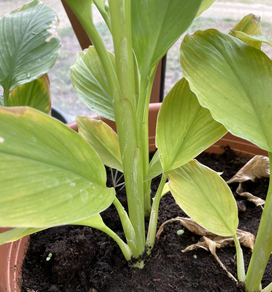 Au jardin, le curcuma nécessite un arrosage régulier, surtout pendant les périodes sèches, mais sans excès pour éviter la pourriture des rhizomes. La plante met environ 7 à 10 mois pour atteindre sa maturité, selon le climat et les conditions du sol. Durant cette période, les feuilles ont développé une couleur vert intense, et les plantes peuvent atteindre jusqu’à un mètre de hauteur.