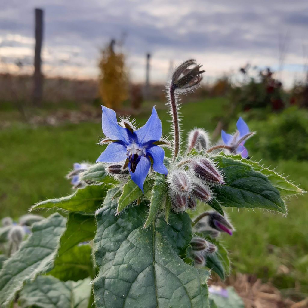 C’est la couleur, rare et profonde, de ses fleurs à cinq pétales disposées en étoile qui, dans la nature, rend la bourrache si reconnaissable. Le bleu déployé par cette belle composition résulte d’un processus biochimique assez complexe dans lequel des pigments floraux, assez répandus dans le monde végétal, interviennent : ils s’agit des anthocyanes, également présentes dans la myrtille, la cerise, le raisin et même la pomme de terre !